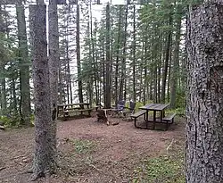 Woody River Recreation Site (52°28′45″N 101°42′03″W / 52.4791°N 101.7009°W)[18] consists of separate parcels of land plus additional Crown land centred around several lakes, Woody River, and Midnight Creek in the Porcupine Hills. Access is from Highway 980, which connects all of the lakes and amenities in the park, and by snowmobile. When travelling by snowmobile from the town of Hudson Bay, there are two warm-up shelters along the way.[19] Accessible lakes within the East Block include Isbister, Spirit, Smallfish, Woody, Elbow, and Townsend. All six lakes have boat access and fish commonly found in the lakes include walleye, perch, and northern pike. Campsites and picnic areas exist at Spirit, Isbister, Smallfish, and Townsend Lakes.[20] A rough ATV trail begins at the Spirit Lake Campground and heads north-east past Spirit Mountain and goes to Armit Lake, which is the largest lake in the Porcupine Hills.