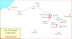 The Portreath Tramroad, or alternatively the Portreath Tramway, was opened in 1815, providing a waggonway route from mines near Scorrier in Cornwall, England, to a port at Portreath. From there, it could be transported to market by coastal shipping. It was later extended to serve the Poldice mine near St Day and became known as the Poldice Tramroad, or Poldice Tramway.