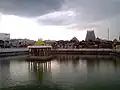 After Pralaya, of the two holy tanks that came into existence in Kumbakonam one was Potramarai tank. As Thirumagal came from 'golden lotus', Potramarai in Tamil, this tank is called as Potramarai tank.[1] In Kumbakonam, this is considered very sacred, the first being the Mahamaham tank. This tank belonged to Sarangapani temple. The tank has walls on all its four sides.[2] Once writers used to mingle on the banks of the tank.[3]