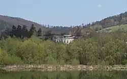 Považská Bystrica is situated in a fold of mountain ranges Strážovské vrchy (1213 m) and Javorníky (1071 m a.s.l.). Mountains offer an attractive experience to trekkers and mountain-bikers in summer season, cross-country and skiing opportunities in winter season. Veľký Manín mountain (890 m a.s.l.) dominates the town skyline providing views from most places in the town. On the hill next to the town on the opposite side of the river Váh lies the ruins of Považský hrad castle with two manor houses beneath, to which the town's history is closely bounded.