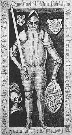 The roots of the settlement of the town connect to Baden culture, in addition to Celtic coins were found on the castle cliff supporting the presence of previous settlers. However, the first written reference to the town comes from 1316, in connection with Matthew III Csák. The next known reference about Považská Bystrica is dated 13 July 1330. In 1432, the town was burned by Hussite troops. The history of the town is very closely connected with the nearby Považský hrad castle, built in the 13th century. The most famous owners of the Bystrica castle and the land were knights Ján and Rafael Podmanitzky, known for their robberies. The family of Podmanicki became rulers of the town in 1458 when King Matthias Corvinus of Hungary donated the castle, the town, and 16 surrounding villages to Ladislav Podmanitzky. During their reign, which lasted almost 100 years, the town was flourishing. This was supported by an important document, the Articuli Podmanickyani, which stated the statute of the town and established old Slovak language as the only official language among congildones. No other town, except Považská Bystrica and Varín, had a statute with such provision regarding language use.