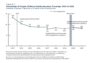 - ^ Martinez, Michael E.; Clarke, Tainya C. (2020). "Percentage of Families That Did Not Get Needed Medical Care Because of Cost, by Poverty Status--National Health Interview Survey, United States, 2013 and 2018". Morbidity and Mortality Weekly Report. 69 (23): 727. doi:10.15585/mmwr.mm6923a4. PMC 7315793. PMID 32525851.
