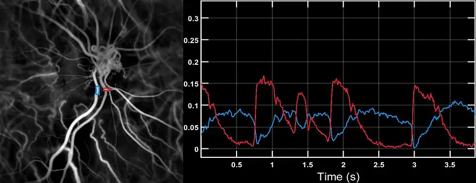 - ^ Puyo L, Paques M, Fink M, Sahel JA, Atlan M (October 2019). "Waveform analysis of human retinal and choroidal blood flow with laser Doppler holography". Biomedical Optics Express. 10 (10): 4942–4963. doi:10.1364/BOE.10.004942. PMC 6788604. PMID 31646021.