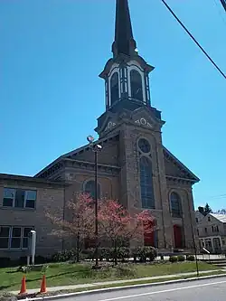 The First Presbyterian Church in Newton, New Jersey, built 1869–1871. The former Presbytery of Newton administered Presbyterian Church affairs for 59 congregations in Northwestern New Jersey.