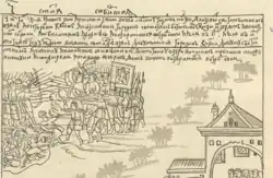 Cossacks fighting against Kod forces under Prince Alachev. Remezov Letopis, pager 48
