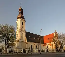 • Saint Lazarus church, possibly first built in the 13th century during the rule of Henry I the Bearded, then rebuilt in its current Gothic style in the 14th century, church of the Order of Saint Lazarus until 1810.[3] The church played an important role in the city's history twice, as it served as a fortified command post of Hungarian King Matthias Corvinus against a Polish-Czech siege in 1474, and as a place from which the Prussians shelled the city in 1757.[3]