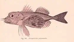- ^ Christopher Scharpf & Kenneth J. Lazara, eds. (10 June 2021). "Order Perciformes (Part 12): Suborder Triglioidei: Families Triglidae and Peristediidae". The ETYFish Project Fish Name Etymology Database. Christopher Scharpf and Kenneth J. Lazara. Retrieved 2 June 2022.