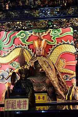 Due to the many miraculous events attributed to him during his lifetime, his cult spread after death.[2] He became a folk Buddhist deity specifically invoked for averting misfortunes and disasters, and his disciples honored him as their patriarch for transmitting profound methods.[2] According to popular belief, Pu'an studied thunder magic from the 30th Celestial Master Zhang Xujing of Mount Longhu, so many Daoist priests and shamans also worshipped him.[5]