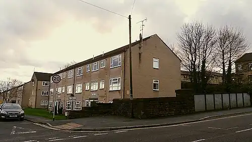 The station and the line in its entirety were closed to all traffic on 15 June 1964.[1] The site of the former station is now occupied by housing, and the cutting in its vicinity has been filled in for the most part. A bus stop is located next to the bridge across the former railway line. Pudsey is now served by the station New Pudsey on the Calder Valley Line, opened on 6 March 1967 and located about 1 mile (1.6 km) north of the town centre.