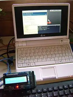 puredyne running on an Asus Eee and controlling an Arduino board