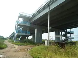 It is 1,828 metres (5,997 ft) long and 34 metres (112 ft) wide. This cable-stayed bridge has two A-shaped towers that are 105.81 meters high. It has 6 lanes for automobile traffic and a 2-metre side lane at the edges for small vehicles and pedestrians. The speed limit is 80 km/h.[2]