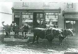 Well into the 20th century there was still a train station, some half-dozen grain elevators, a bank, post office, butcher, two general stores, a hardware store, pharmacy, the hotel — "the Queen’s Hotel, which officially opened in 1884, was lost in an early morning blaze on April 16, 2003"[28] — (and "beverage room," in the terminology of the early 20th-century Canadian West, though closed from 1915 to 1925 under Premier Walter Scott's prohibition and temperance legislation[29]), barber shop, firehall, law office, numerous service stations, several cafés, cinema (later converted to a grocery store) and a covered rink.[30] In the 1890s, there was "a flour mill, a creamery [and] a felt and boot factory."[9]