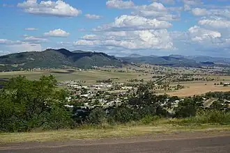 Quirindi (/kwəˈrɪnd/ or /kəˈrɪnd/)[3] is a small town on the North West Slopes region of New South Wales, Australia, in Liverpool Plains Shire. At the 2021 census, Quirindi had a population of 2,602.[4] It is the nearest link to Gunnedah to the northwest and Tamworth to the north. The local economy is based on agriculture, with broadacre farming dominant on the black soil plains to the west and livestock grazing in the hilly eastern part of the district.