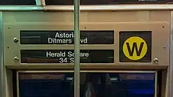 The interior side route & destination rollsign on the W