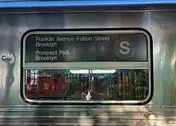 Exterior fixed side signage dedicated to the Franklin Avenue Shuttle