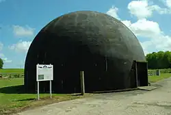 Surviving buildings on the site include the control tower and a dome trainer building used for the instruction of ground-to-air anti-aircraft gunnery.[13] Langham Dome, which sits on the edge of the former base, is one of only a half dozen such sites surviving in the United Kingdom. It was built in 1942. Film of enemy aircraft was projected onto its walls for target practice.[14] The structure has been restored and a museum installed with funding from English Heritage and the National Heritage Lottery Fund.[15] In 2015 a documentary about the dome was broadcast by BBC One.[16]