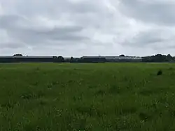 The airfield proper has for many years been occupied by a quarry which has effectively removed all trace of the flying field, whilst the site on which the technical site once lay is now a small village called Crossways, the original northern taxiway being still in use as a road through the village where two dispersal pans and the old ATC tower (albeit heavily converted to a public dwelling - Egdon House) still remain, and the old station cinema is now the village hall. The two bellman style hangars still remain, rumoured to be used by local farmers for fertilizer storage, plus an Over Blister hangar (one of eight built during the war) and other buildings exist in the woodland areas surrounding Crossways, although some have been demolished. One of the base's billets is now one of the local shops, and at the junction of Mount Skippet Way and Airfield Close in Crossways village housing is a memorial to the airfield, located in a grassed recreational area. During recent clearance work in preparation for new buildings on the North East side of the old airfield a brick block house and a concrete rifle range were revealed. Both have now been demolished but the photographs shown were taken just prior to their removal. Further clearances to build an access road across the south-east corner of the flying field has also resulted in the excavation of a group of the aircraft tie-down points.