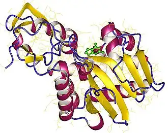 rRNA N-glycosylase (EC 3.2.2.22, ribosomal ribonucleate N-glycosidase, nigrin b, RNA N-glycosidase, rRNA N-glycosidase, ricin, momorcochin-S, Mirabilis antiviral protein, gelonin, saporins) is an enzyme with systematic name rRNA N-glycohydrolase.[1] This enzyme catalyses the following chemical reaction