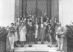 A group of holiday-making English Radio Luxembourg fans, pictured in front of the main entrance to the Transmitting Station. The date is Wednesday 9 August 1939, three weeks before the declaration of war.