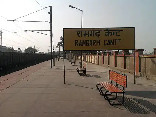 Ramgarh Cantt railway station, serves the city of Ramgarh Cantonment which is the headquarters of the Ramgarh district in the Indian state of Jharkhand. Ramgarh Cantt railway station belongs to the Ranchi division of the South Eastern Railway zone of the Indian Railways.[1]