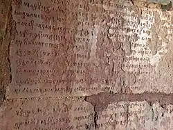 The Rāmtek Kevala Narasiṃha temple inscription is an epigraphic record of the Vākāṭaka dynasty, documenting the construction of a temple dedicated to the Narasiṃha or lion-man incarnation (avatāra) of Viṣṇu. The inscription dates to the 5th-century CE. The inscription is presently built into an interior wall of the Kevala Narasiṃha temple at Ramtek, in Nagpur district, Maharashtra, India. The inscription is written in 15 lines of Sanskrit, in the later Brahmi script, but is damaged. It records the lineage of the Vākāṭaka rulers and the foundation of the temple. The inscription is composed in Puṣpitāgrā, Upajāti and Śloka metres.