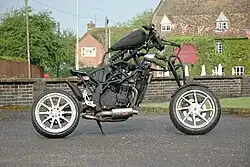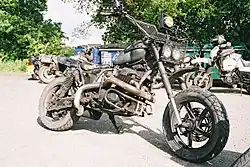 The concept of keeping a motorcycle in at least minimally operational condition without consideration for appearance has probably characterized motorcycle ownership since its earliest days.[2] The essence of a rat bike is keeping a motorbike on the road for the maximum amount of time while spending as little as possible on it.[3] This calls for adaptation of parts that were not designed to fit the model of bike in question. While the origin of the term rat bike is unclear, it may be attributable to custom motorbike magazines,[4][5] and retrospectively applied. Most rat bikes are painted matte black but this is not a requirement.[6]