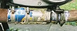 Rat bike engineering: sound joint between sections of exhaust pipe without the use of welding equipment.
