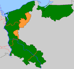 Location of Posen-West Prussia (orange) and of the other "Recovered Territories" (green)