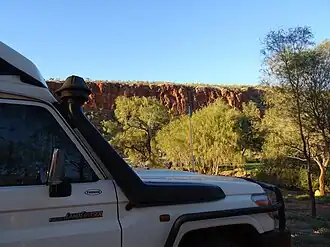 The area features camping facilities at the Woodland and Ridgetop campgrounds, which contain amenities such as a toilet and fire pit, however fees apply to use these locations.[3] The gorges can be accessed from the nearby Larapinta and Namatjira drives.[2]