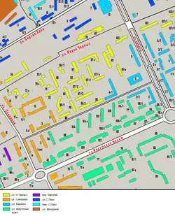 Houses of standard series on the map of the 2nd microdistrict of Tomsk, Russia