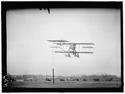 The Rex Smith Biplane was used in the successful April 3, 1911 U.S. Army Signal Corps experiments in wireless communications.[5][6] Potomac river pontoon experiments on April 5, were not as successful, with the aircraft plowing into the water headfirst nearly drowning the test pilot Jannus. Just two days later the machine was ready again. Janus took up actor Nat M. Wills, and later two female passengers at the same time. Marking the first time an aircraft flew with more than one passenger in the United States.[7]