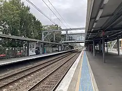 Rhodes railway station is a heritage-listed suburban railway station located on the Main North line, serving the Sydney suburb of Rhodes. It is served by Sydney Trains T9 Northern Line services.