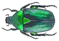 Rhomborhina is a genus of large scarab beetles described by Hope in 1837. They are members of the subfamily Cetoniinae. They mostly live in East and South Asia. The name is frequently misspelled as Rhomborrhina following an unjustified change by Hermann Burmeister in 1842.[2]