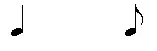 1. Quarter (crotchet), eighth (quaver) (generally barred, therefore, in 3