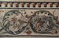 Roman rinceaux on a panel with a griffin from the Villa of Lucio Vero, 2nd century, vitreous paste panel, Palazzo Massimo alle Terme, Rome