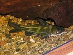 Rita (from the Bengali name of Rita rita),[1] commonly known as velvet catfishes, is a genus of catfish found in South Asia. It is the only member of the family Ritidae.[2] These species have a single pair of mandibular barbels, an elongated Weberian apparatus firmly sutured to the basioccipital and the sensory canal on the posttemporal enclosed with bone.[3]