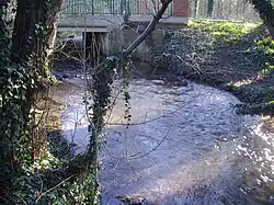 From here the river runs through a gentle sloped valley westwards and passes under the B1153 road and into Hillington Park. There is a tributary spring in a meadow on the Hillington side of Pond Farm, at Congham. This tributary of the river is called the River Cong, flowing through the woods and over an impressive waterfall, where in the past it powered all the machinery within the Congham Oil Mill. The Cong then flows on under the A148 and joins the Babingley close by the Gatton Waters caravan site. After Hillington Park the river flows into the lake that served another long-gone watermill that stood close to Hillington Hall The now increased force of water once powered the large waterwheel at what, years ago was known as West Newton Paper Mill.[3] It changed over from making paper to grinding corn which lasted up until a few years after the last war. From the lake the river runs through a wooded valley out of the Park and into the countryside south of the royal estate of Sandringham. The banks of the river along this stretch are very wooded. Just past Hillington, the river passes the northern edge of a lake that has been used as a camping and caravan site.