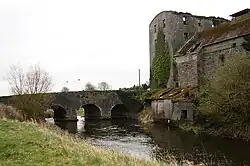 Works, to the cost of IR £750,000,[8] were undertaken on the river in the late 1940s and early 1950s to improve drainage in the river’s catchment area. As part of the Arterial Drainage Scheme, designed to tackle poor drainage caused by Ireland’s relatively low-lying topography, the river was deepened and widened, leaving the river with the high banks distinctive of many of the rivers in the Irish midlands that received this treatment. More recently, in late 2008 the river was diverted from the N52 road beside Mullingar in order to accommodate a new roundabout and bridge.[9]