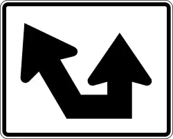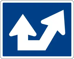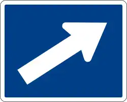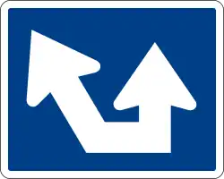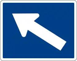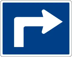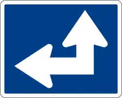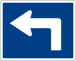 With the exception of the special shapes and designs used for Stop, Yield, and No Entry signs, mandatory signs (e.g., Must Turn Left) are round with a blue background, white border, and a white pictogram. Those which express a prohibition (e.g., No Left Turn) show the pictogram crossed out by a red diagonal bar. This is in accordance with the Vienna Convention on Road Signs and Signals (Type A variants).[6][7]