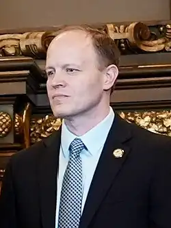 Prior to entering politics, Farnsworth worked as a high school social studies teacher at Mounds View High School. He worked as a teacher for the Minnesota Department of Corrections at Red Wing and Togo before being hired as a special education teacher with the Hibbing School District. He is also a real estate agent with Village Realty.[2] Farnsworth was elected to the Minnesota Senate in November 2022 and assumed office on January 3, 2023.[3][4] Through redistricting, he succeeded the recently deceased David Tomassoni, who was a Democrat-turned-independent.[5]