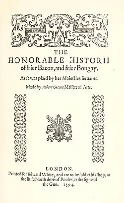 - The Honorable History of Friar Bacon and Friar Bungay (1594) text facsimile.