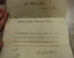 2. ^ a b c "Robert Lansing - People - Department History - Office of the Historian". history.state.gov. Retrieved 2023-03-08.