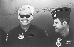 Air Force Secretary Robert C. Seamans, Jr. on a testing flight with General Dynamics F-111 Aardvark.