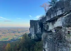 Since its earliest days, Rock City has claimed that it is possible to see seven states from a particular spot (Lover's Leap) in Rock City; a scientist at the University of Tennessee, when asked to prove the issue in 2007, pointed out that the claim refers to seeing mountains and other high points in many of these other states, adding that the claim was made long before the air pollution associated with the proliferation of automobiles and coal-fired power plants, and summed up with "I never thought it significant."[3]
