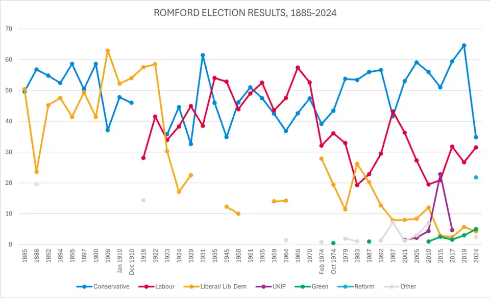 5. ^ "New Seat Details – Romford". www.electoralcalculus.co.uk. Retrieved 29 March 2024.