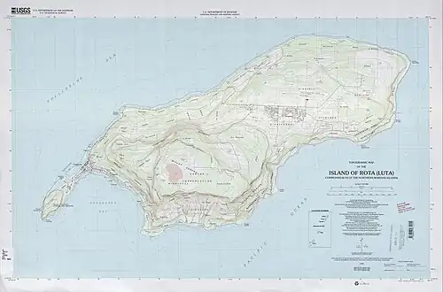 Rota (Chamorro: Luta), also known as the "Friendly Island", is the southernmost island of the United States Commonwealth of the Northern Mariana Islands (CNMI) and the third southernmost of the Marianas Archipelago (the first being Cocos Island). Early Spanish records called it Zarpana; the name Rota may have come from the Andalusian municipality of Rota. It lies approximately 40 nautical miles (74 km) north-northeast of the separately administered United States territory of Guam. Sinapalo village is the largest and most populated, followed by Songsong village. Rota functions as one of the four municipalities of the CNMI.