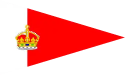 The burgee and British defaced blue ensign both carry the traditional Tudor crown in accordance with the club's Rules; the crown is often inaccurately illustrated.