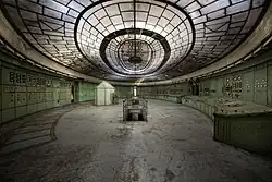 Ruins photography, sometimes called ruin porn,[2] is a movement in photography that takes the decay of the built environment (cities, buildings, infrastructure, etc.) as its subject. While "ruins" may be broadly defined as the remnants of human achievement (e.g. the remains of ancient Sumer or Machu Picchu), "ruins photography" generally refers to the capture of urban decay in the post-industrial areas of the world. Ruins photography catalogues the abandonment and decline of cities most of all, and has sparked conversations about the role of art in various urban renewal, restoration, and conservation projects in cities throughout the globe.[3] [4]