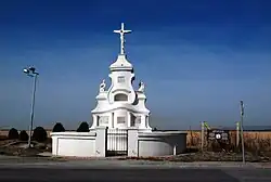 When World War II began, Ruma was one of the centers of German national minority in Vojvodina.[7] In 1942, during the Axis occupation of Syrmia, a unit of the Third Reich's Wehrmacht, known as the Volunteer Company Ruma ES der DM, was formed from local Volksdeutsche volunteers. A large number of non-German citizens of Ruma participated in the anti-fascist struggle against Axis occupation.[9] In 1944, as a consequence of the war, most members of the German ethnic minority left the town, escaping from Yugoslav partisans and Soviet Red Army.[9] Around 1,000 of them remained when the partisans took the town. Many of them were shot in November 1944, while survivors were taken to the Svilara concentration camp in Sremska Mitrovica.[10]