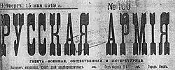 The Russian Army (Russian: Русская армия, romanized: Russkaya armiya)[a] was the armed forces of the White movement, united on an all-Russian scale in 1919 under the sole formal command of Alexander Kolchak, the Supreme Commander-in-Chief of all the armed forces of the Russian State.